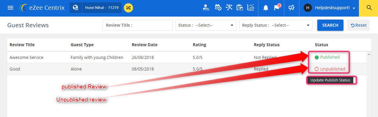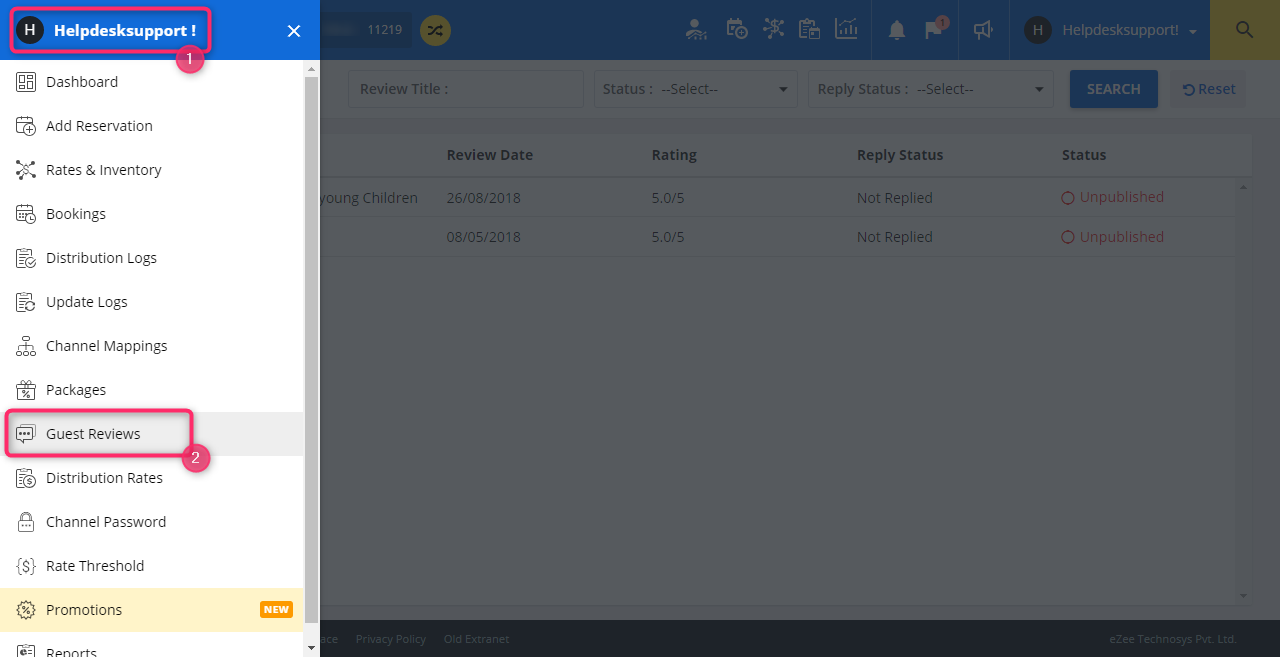 To display guest reviews on your booking engine via eZee Centrix, follow these steps: