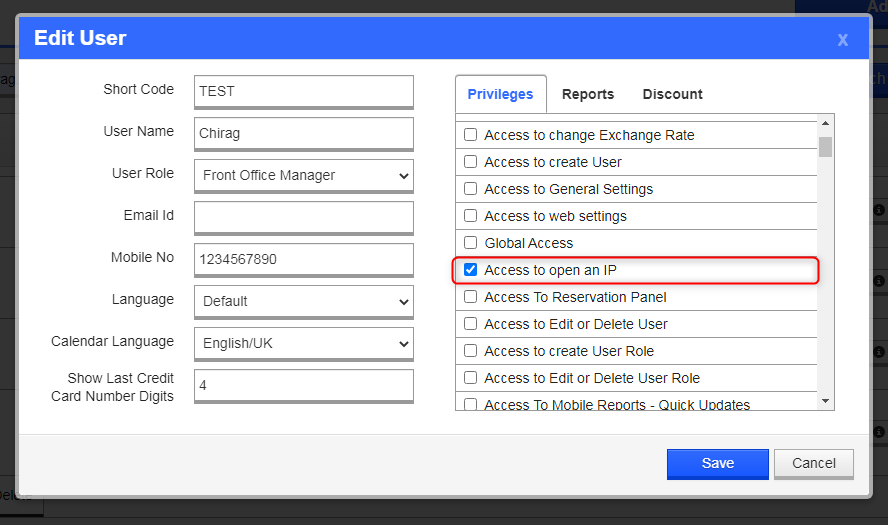 Once the IP is set, A user needs the privilege shown in the below screenshot “Access to open an IP” in order for this to work, Global Access should not be given here.