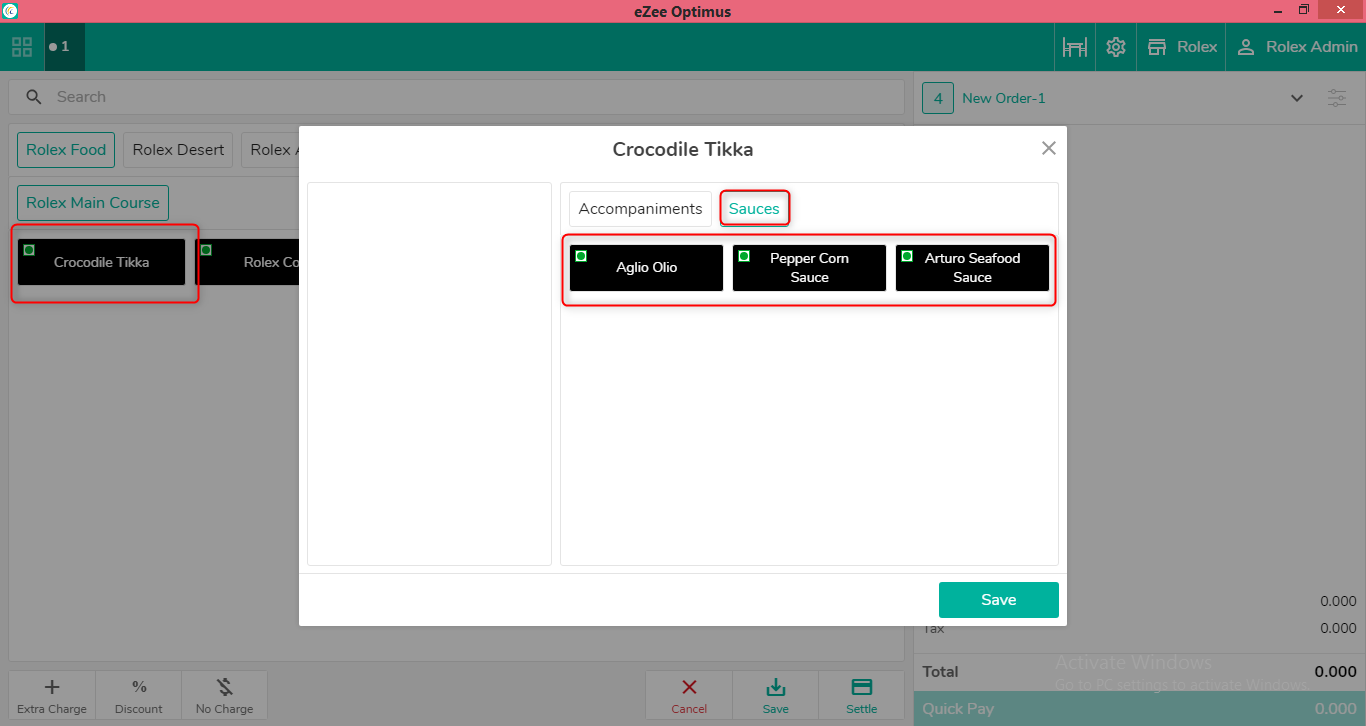 eZee Optimus >> Switch to back >> Menu >> Item >> Modifier