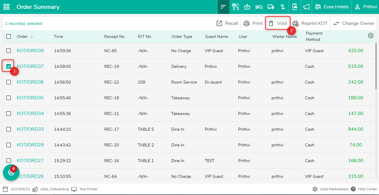 Step 5: The void order list can be viewed from the order summary following the below screenshot.