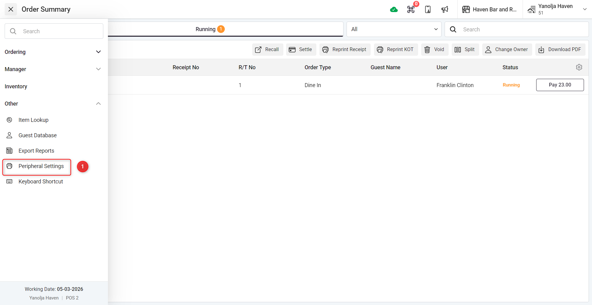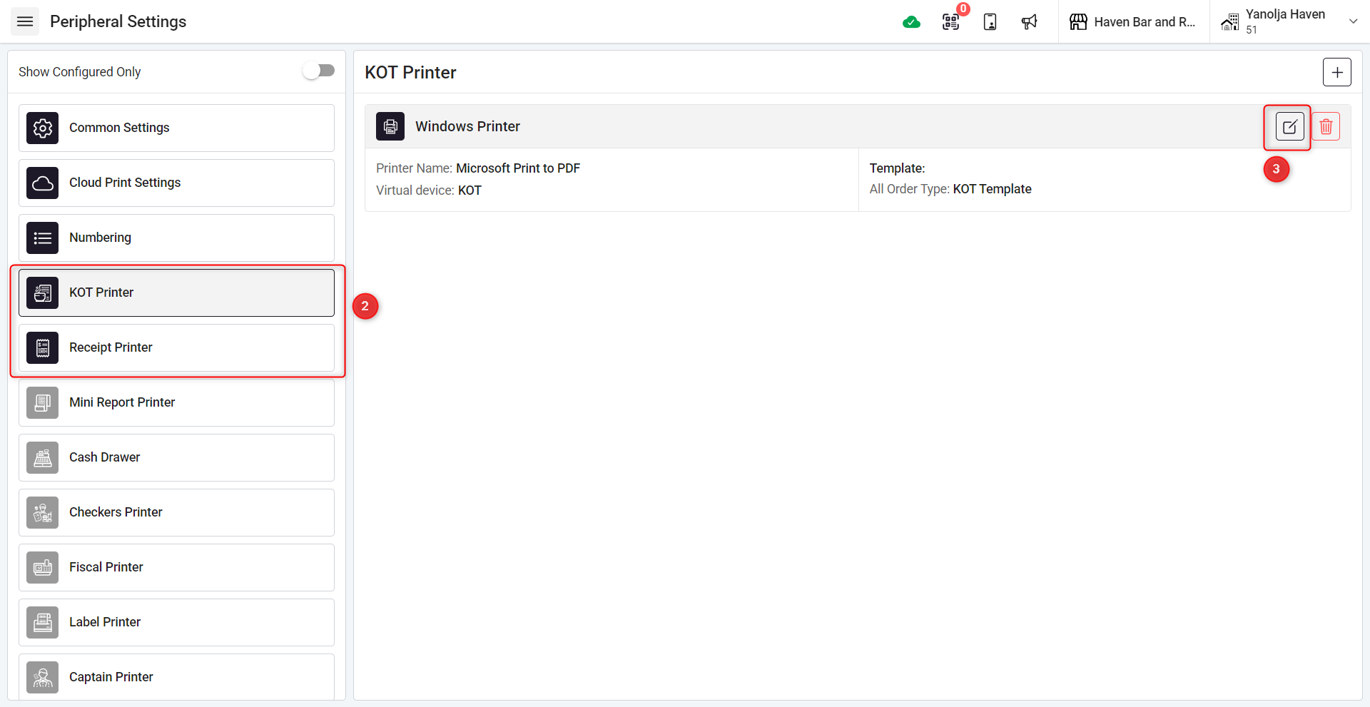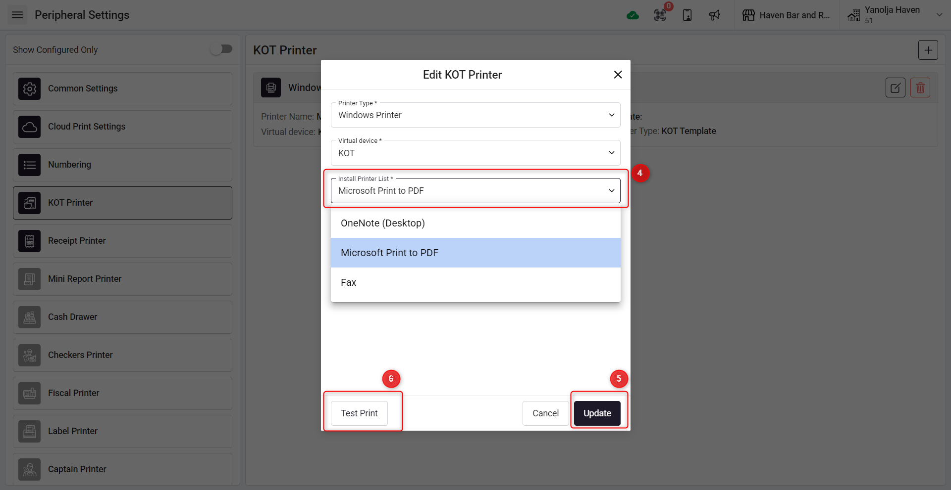 Follow these steps to update or change the printer settings in your POS system: