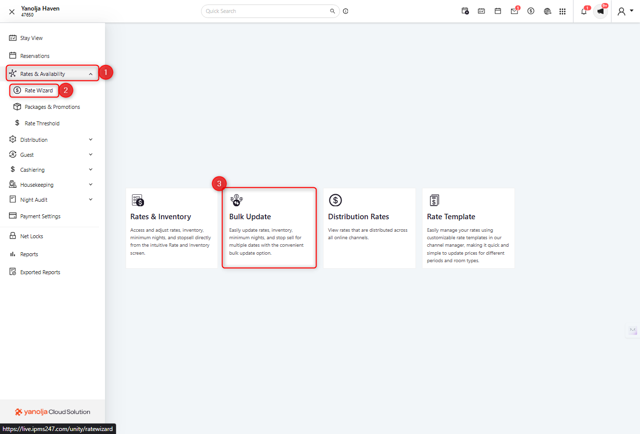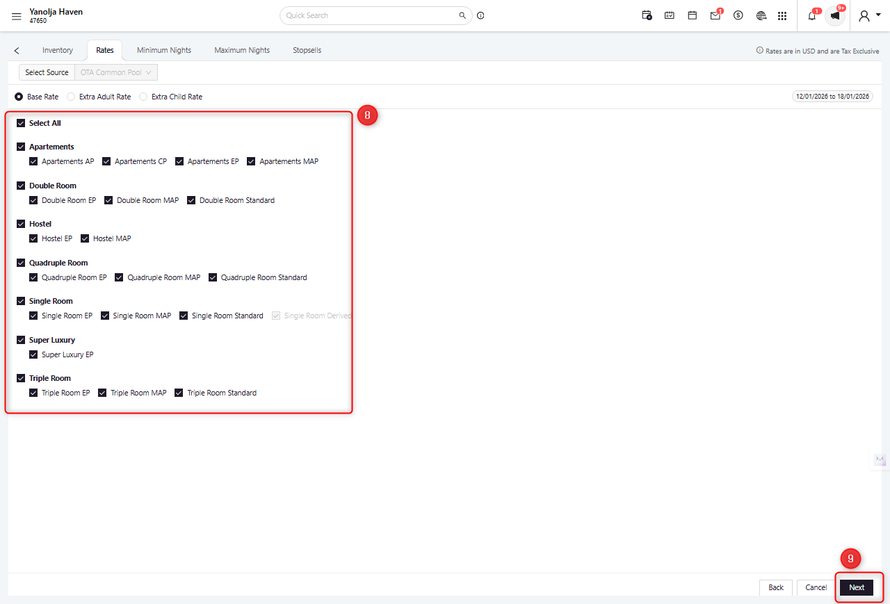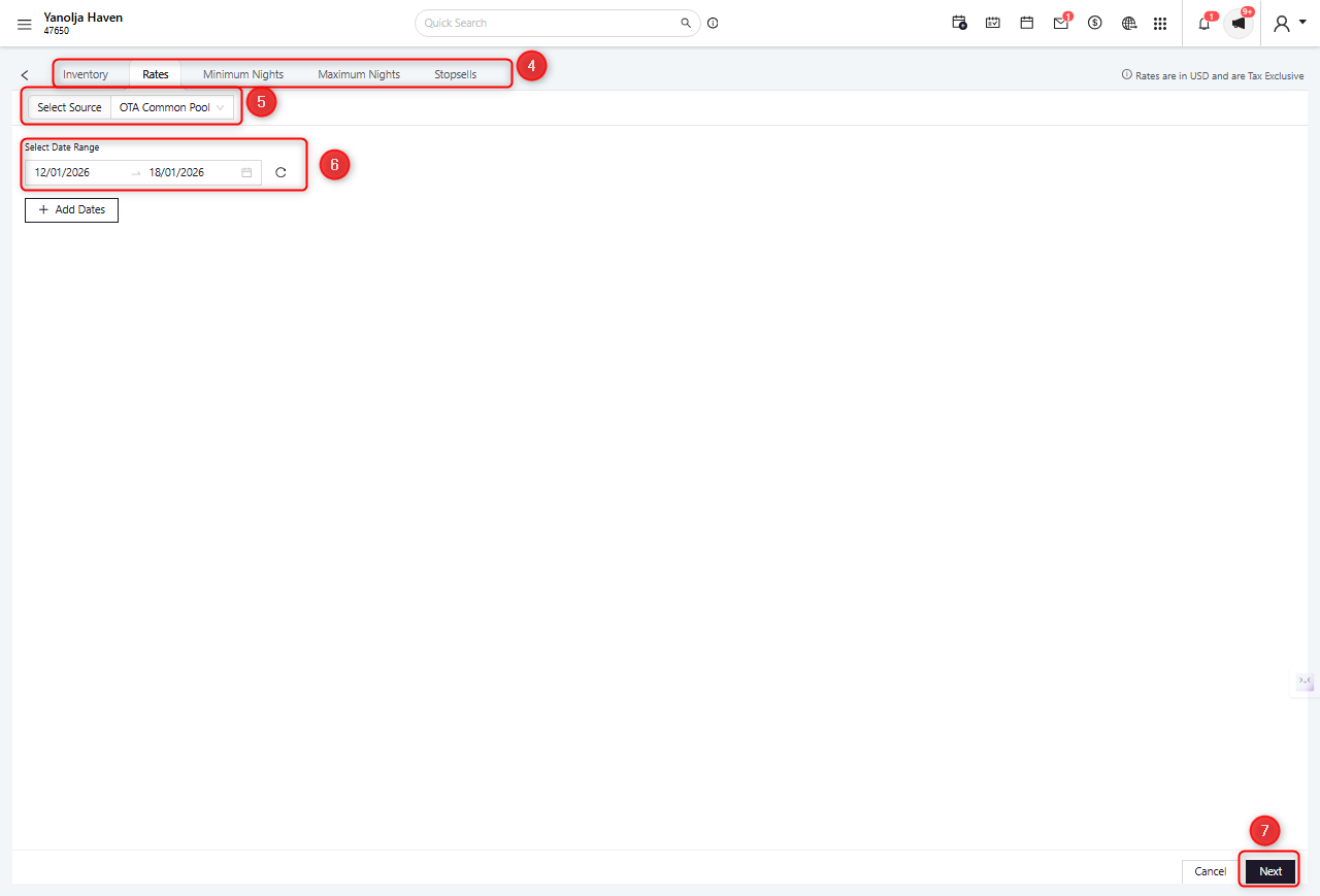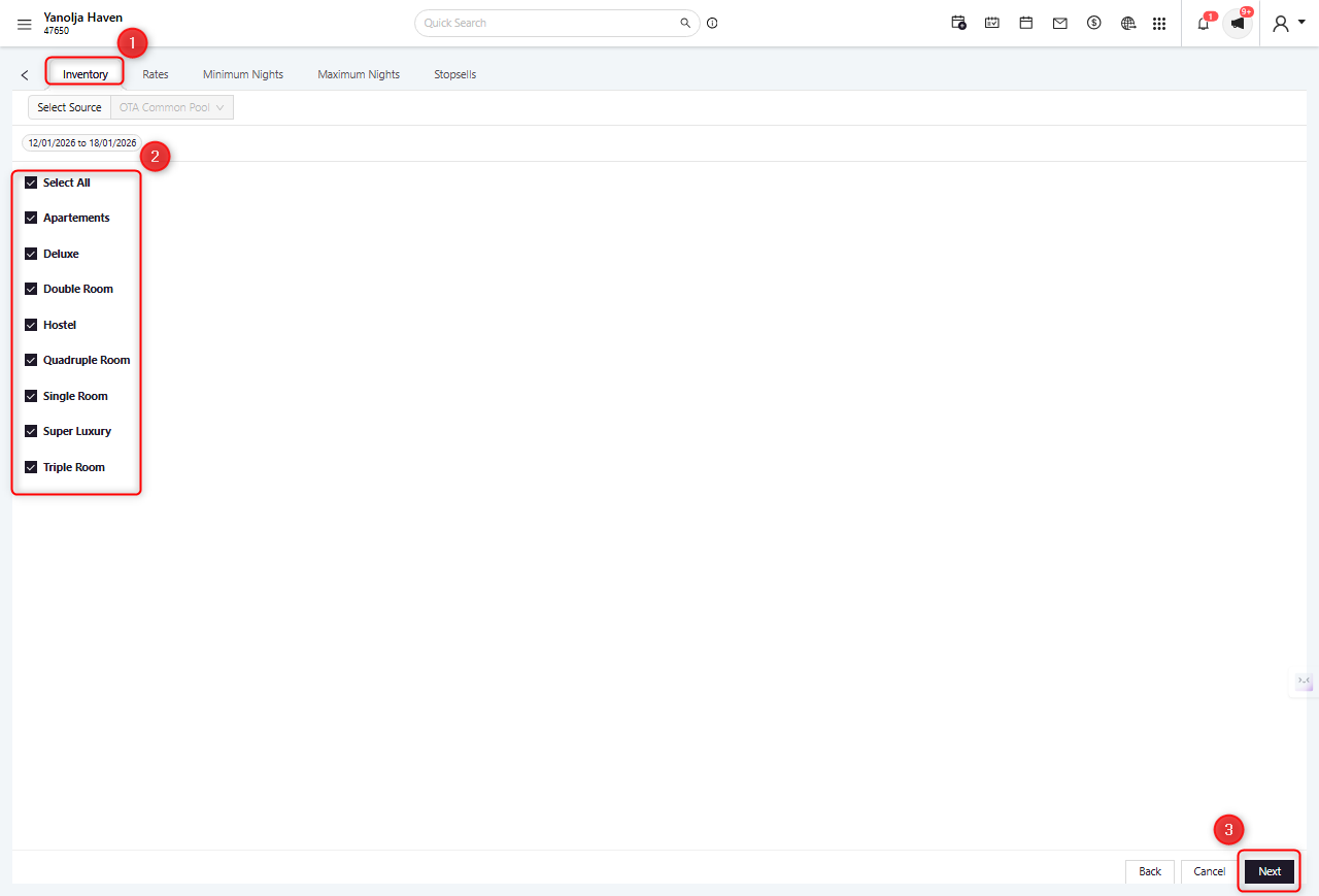 4. Open the operation tab you want to perform, such as. (Inventory, Rates, Minimum Nights, Maximum Nights and StopSells)