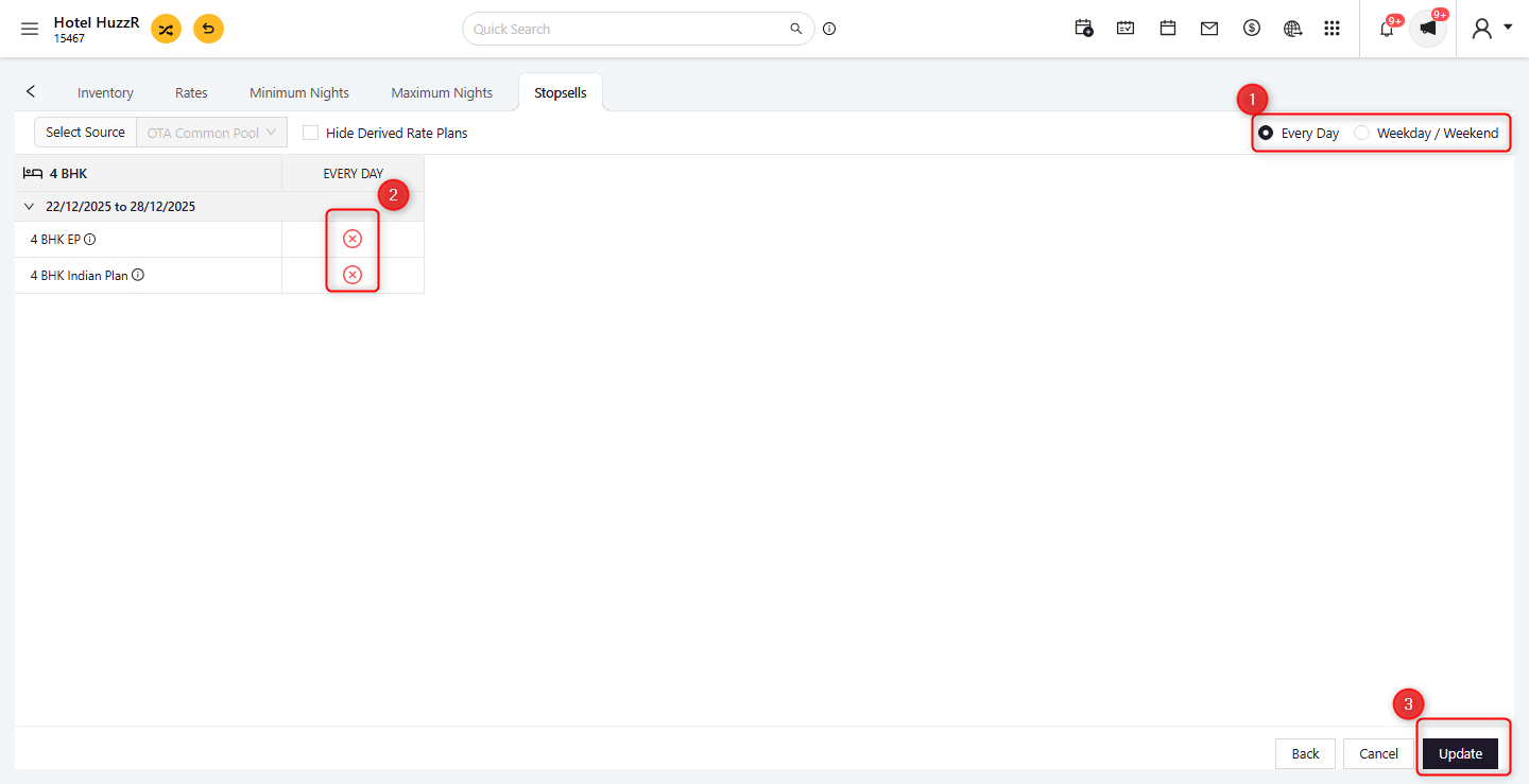 Click the cross mark to activate the Stop Sell; it will change to a check mark (×), indicating the Stop Sell is active.