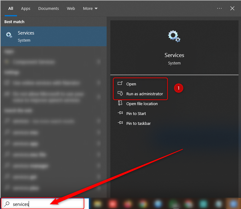 Step 2: Type "Services" into the search bar.