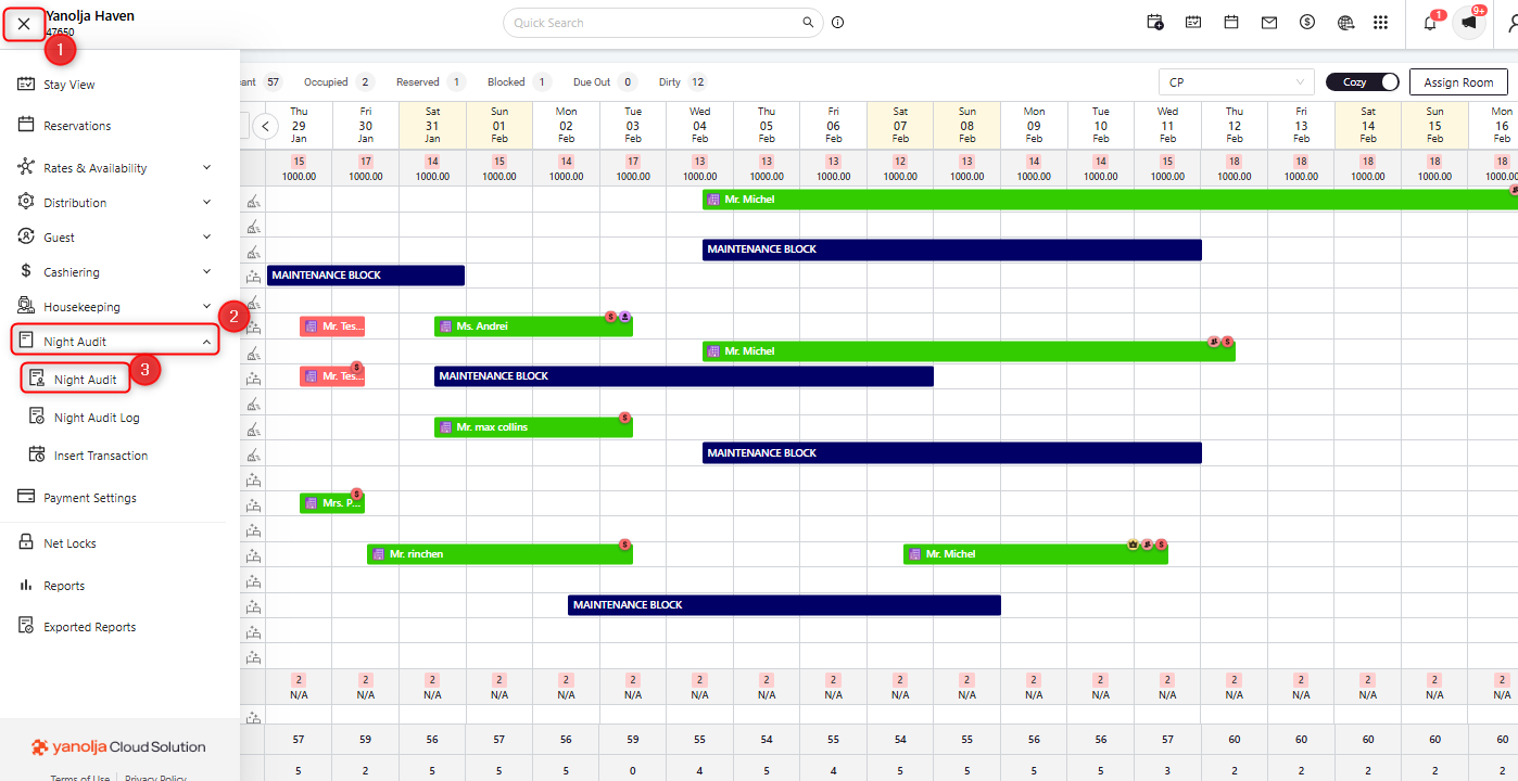 Select Night Audit to begin the process.