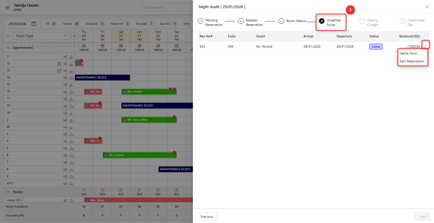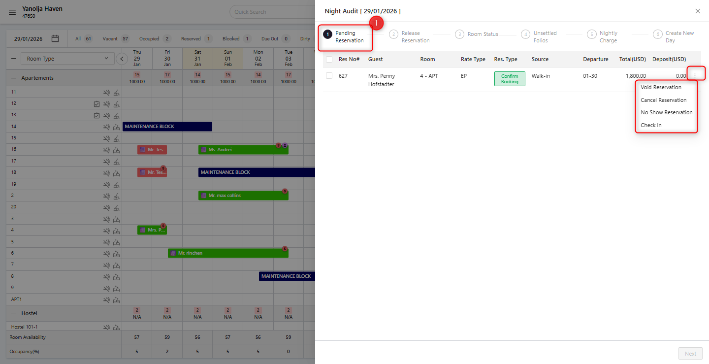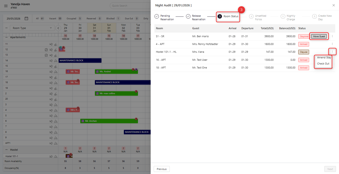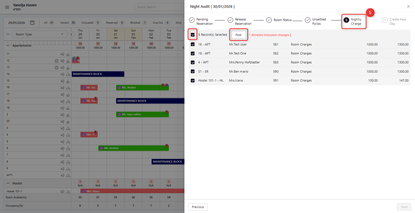 By following this structured Night Audit process, System ensures accurate financial records, proper room management, and a seamless transition between business days, helping prevent operational and reporting discrepancies.