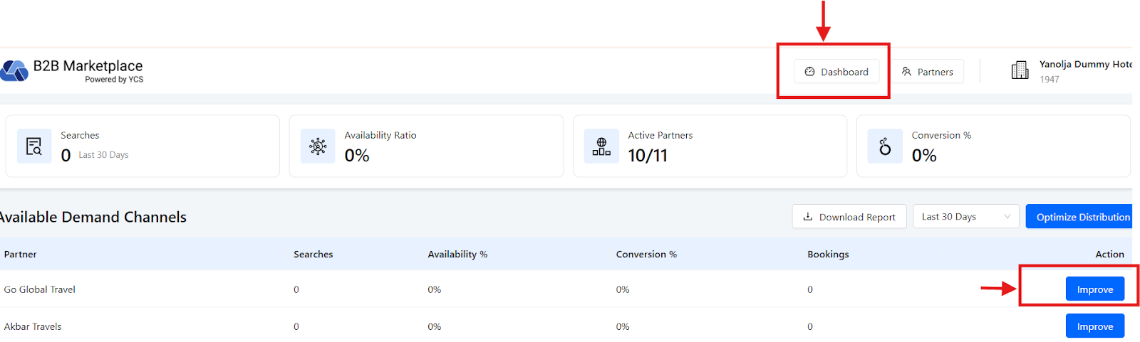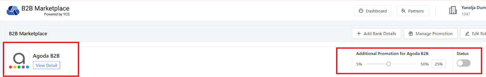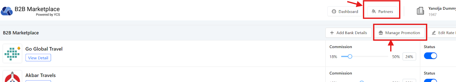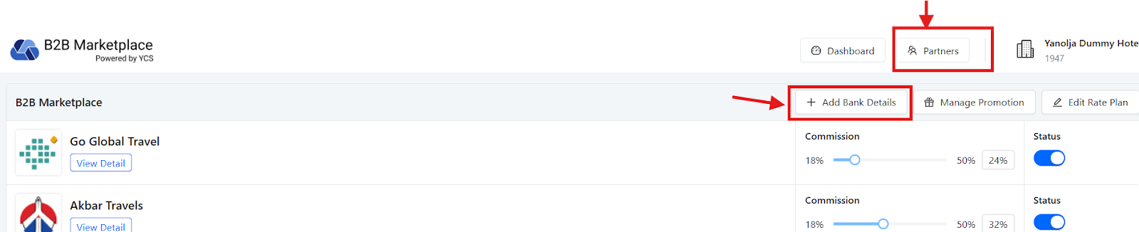 The promotions can be offered to the distributors through the B2B marketplace. One has to go on the Partners tab where you will find the promotions tab, through this the hotel can run different kinds of promotions.