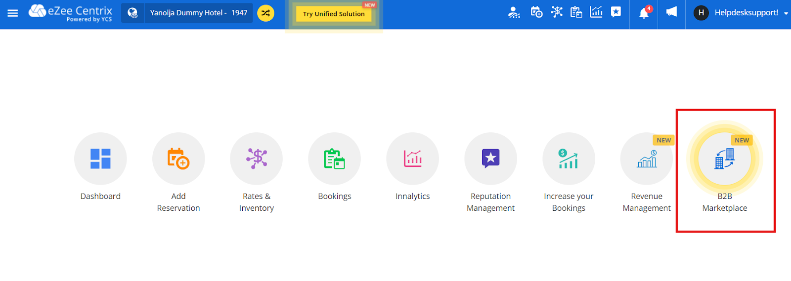Hotels can find the B2B marketplace tab in the channel manager dashboard, in the extreme right hand corner.