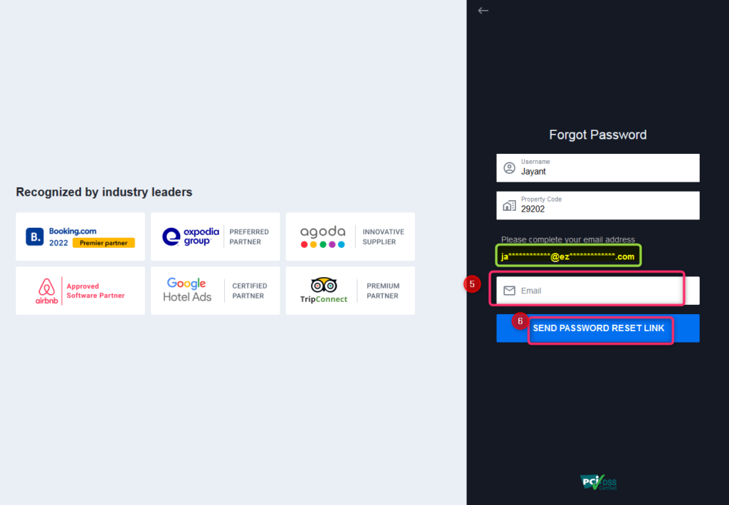 To reset your password in Property Management System, follow these steps: