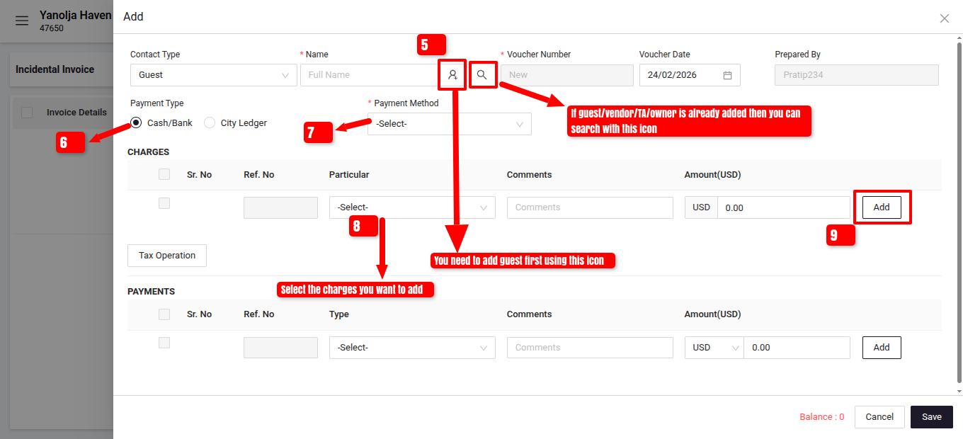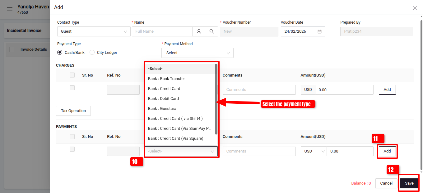A POS (Point of Sale) Incidental Invoice in PMS allows hoteliers to manage charges for non-staying guests utilizing hotel facilities, such as restaurants or swimming pools. These charges are handled separately from guest folios.