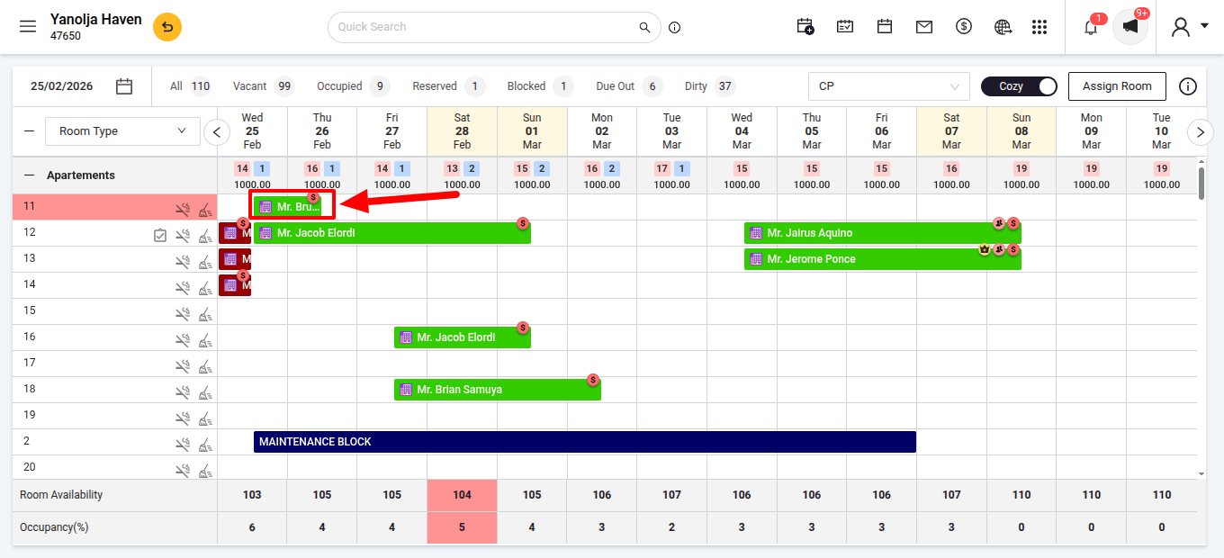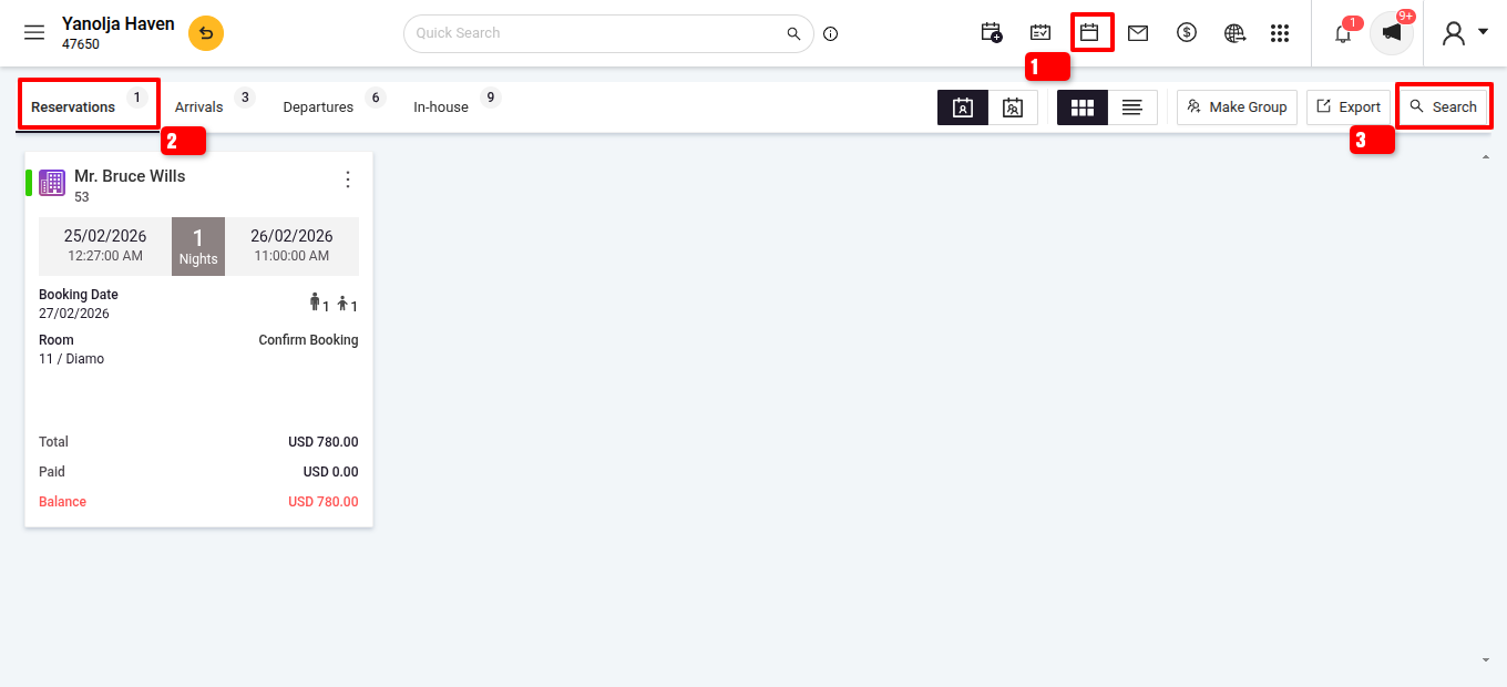 - Navigate to Front Office > Reservation List.
