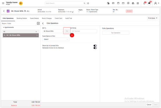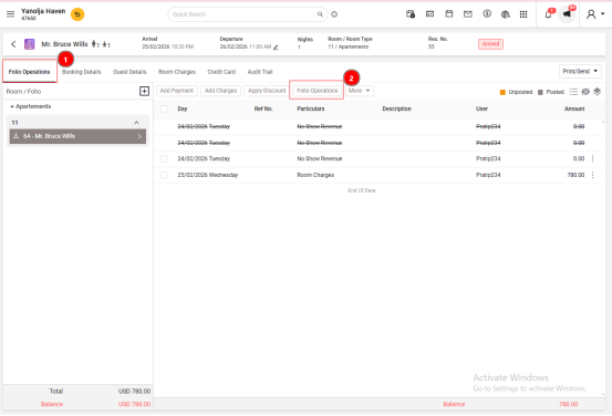3. Go to Folio Operations.