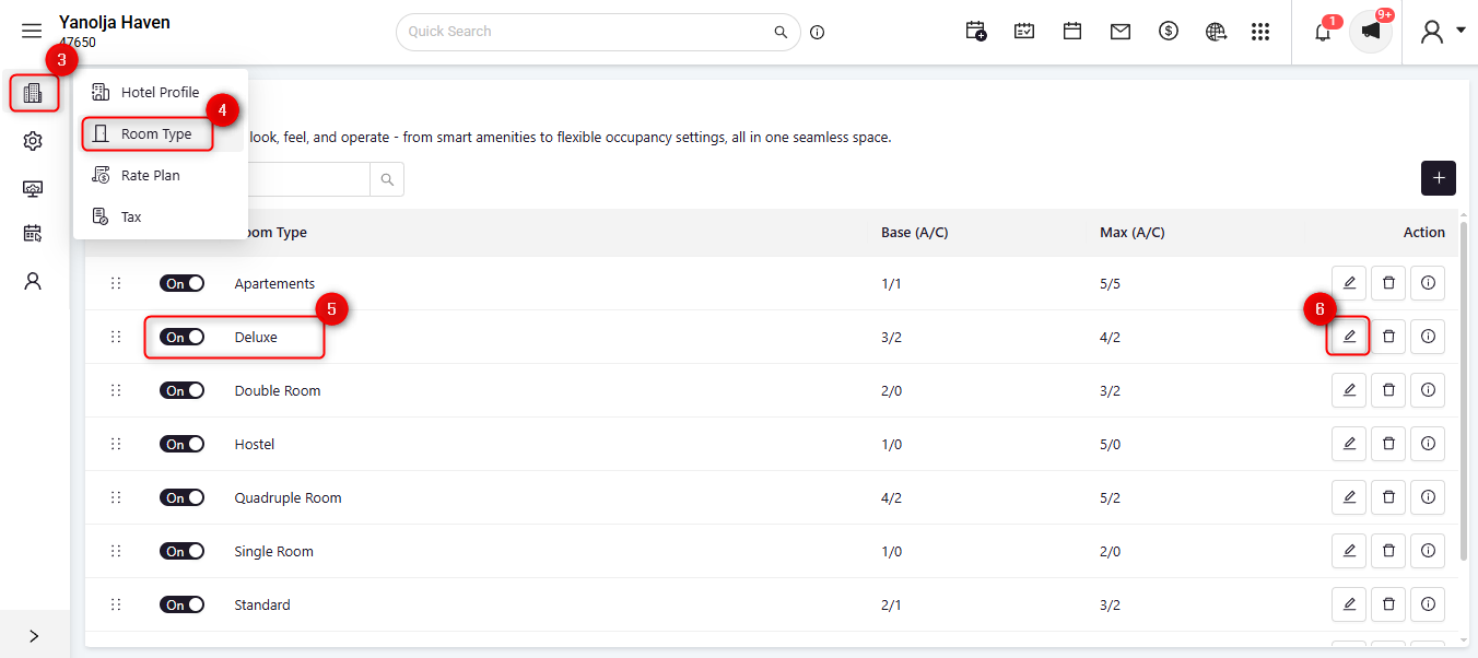 Navigate to Room Type Management: