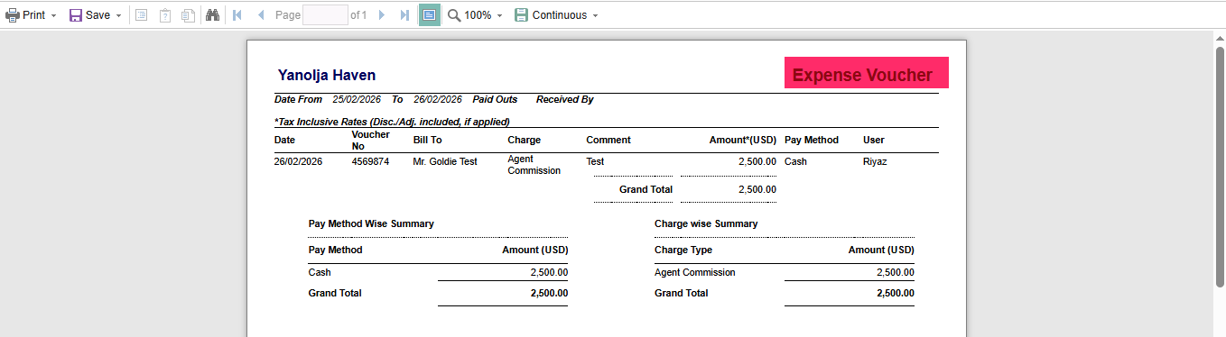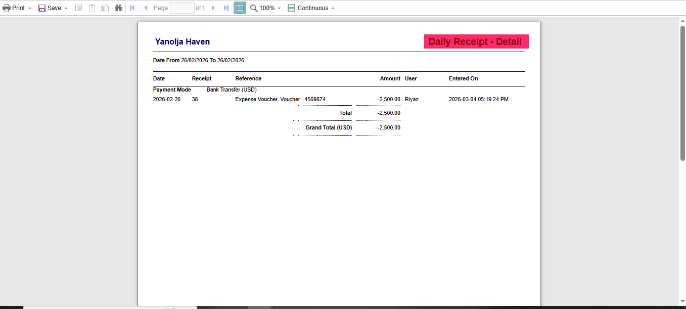 In the Expense Voucher Report and Daily Receipt Detail Report, you can view the details of the recorded expenses.