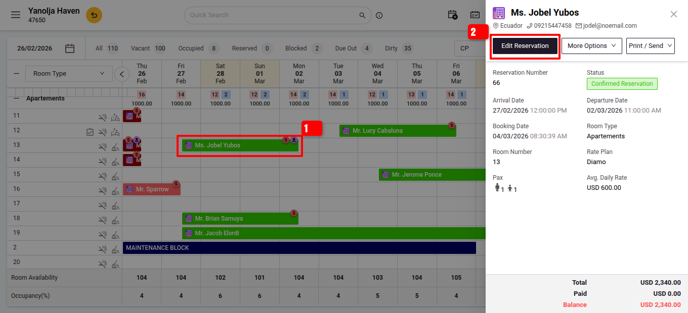 - Go to Front Office > Reservations > Edit Transaction.