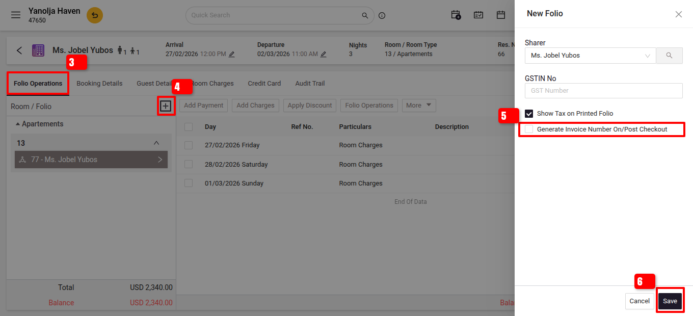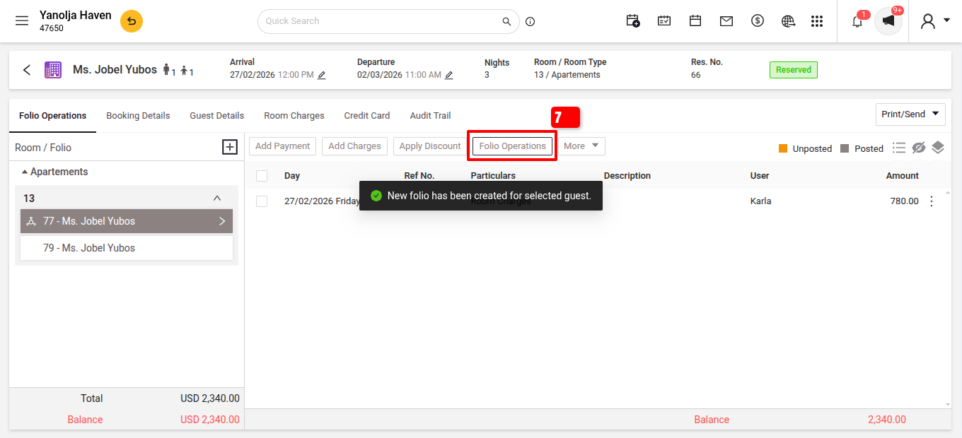 - Click Folio Operations > Add Folio.