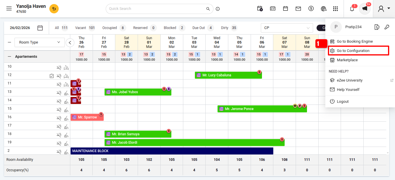 To sort rooms in PMS, follow these steps: