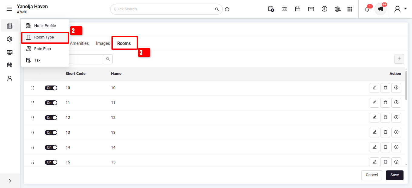 - Click on Room type setting > Room.