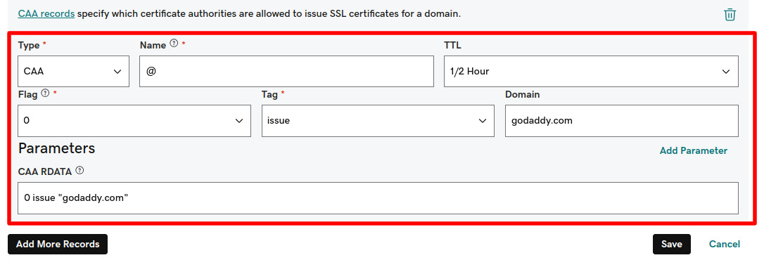 Step 2: Set Up SSL Certificate (Create CAA Record)