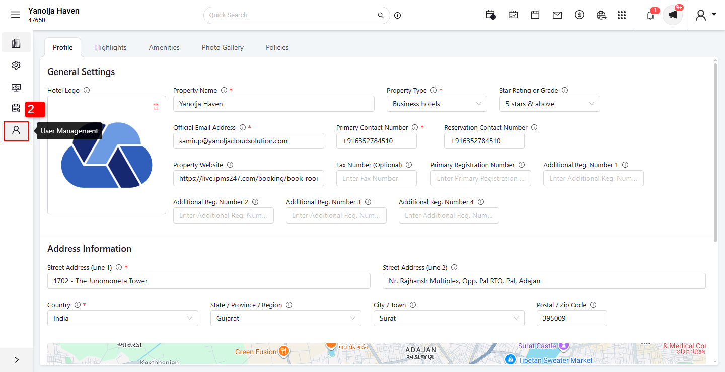 Please login to the PMS Front panel. Click on the Hotel Name available on the right side of the header. You will see a new icon for 2FA.