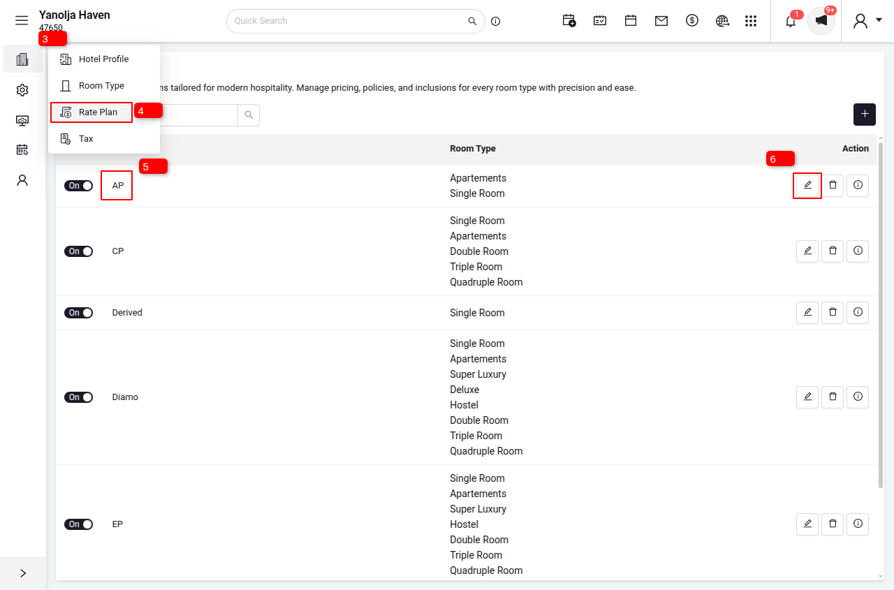4. Click on Rate Plans.
