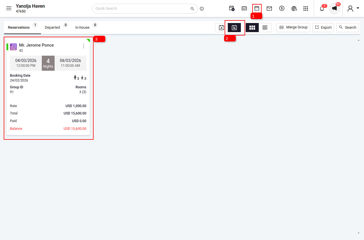 Navigate to Reservations > Group View.