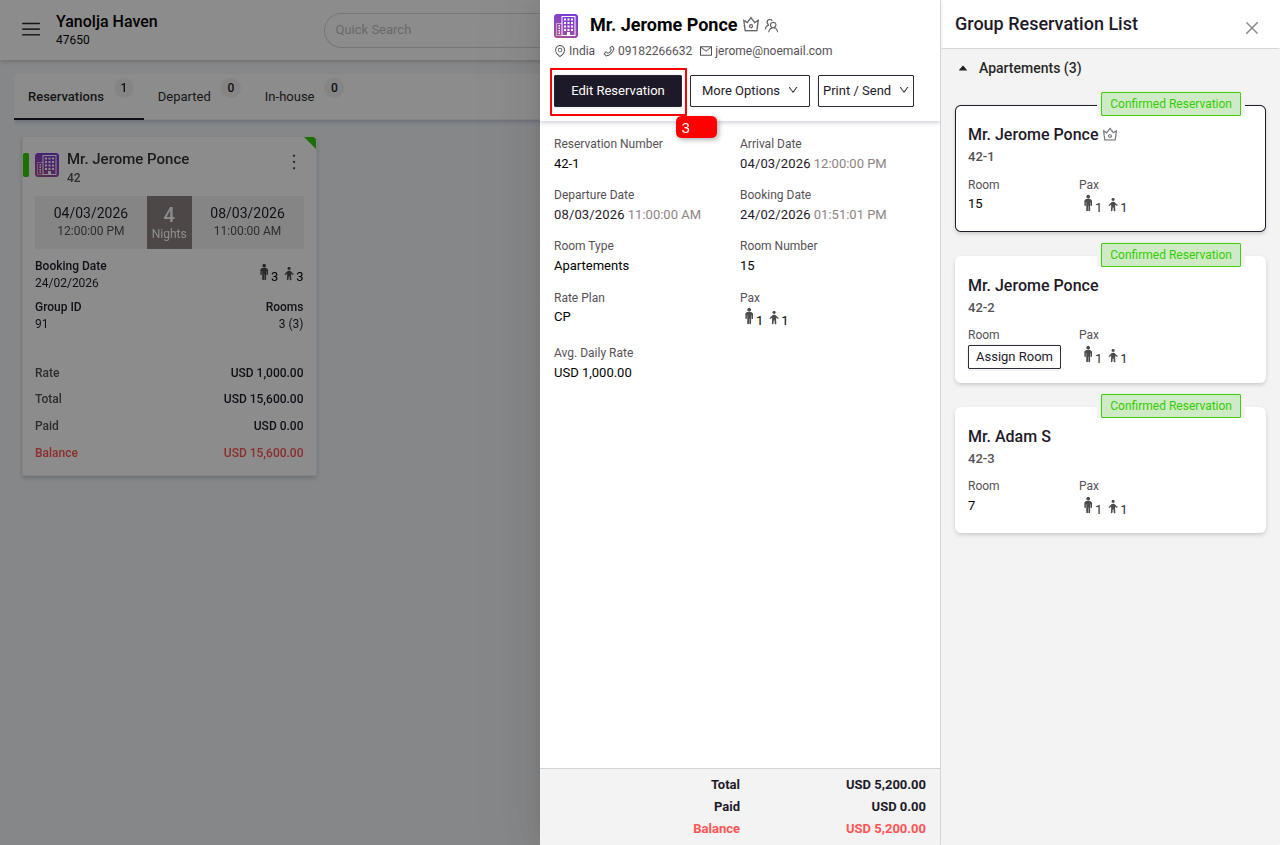 Note: Once a transaction is removed from the group, it becomes a standalone reservation available in your primary list for individual invoicing and updates.