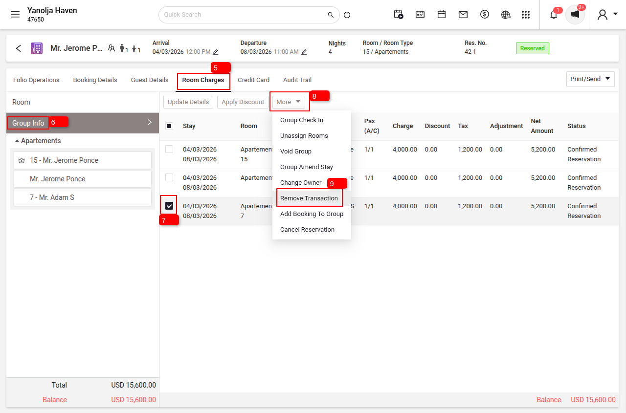 How to Remove a Guest Transaction from a Group Reservation
