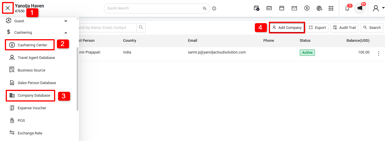 - Within the 'Cashiering' section, choose 'Company Database'.
