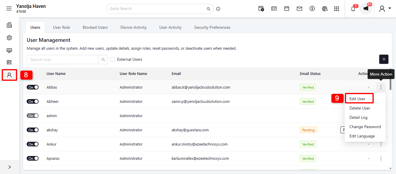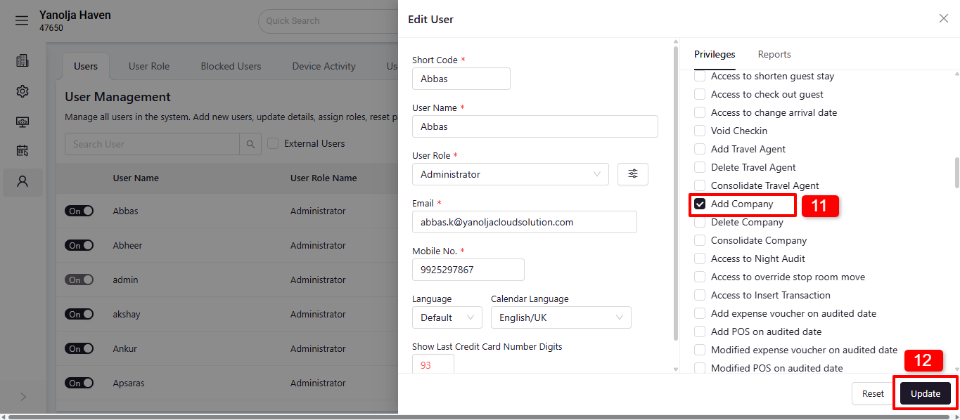 - Click on 'Edit User' and go to 'Privileges'.
