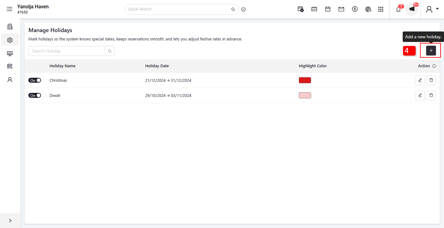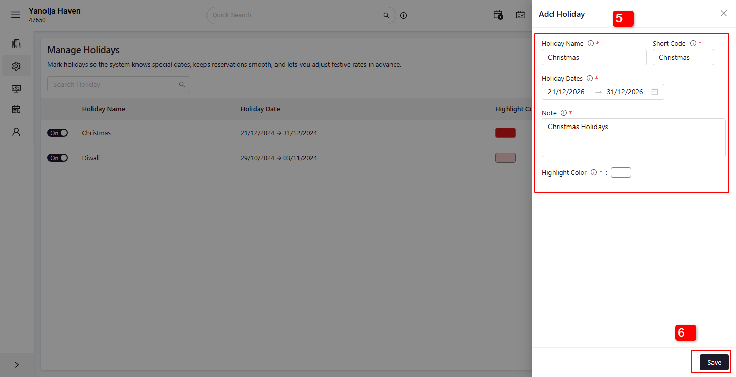 Season Name and short code (e.g., Peak Season, Off-Season)