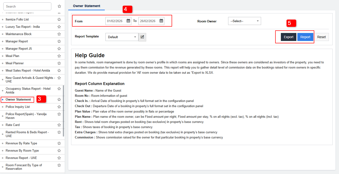 - Click on Owner Statement Report.