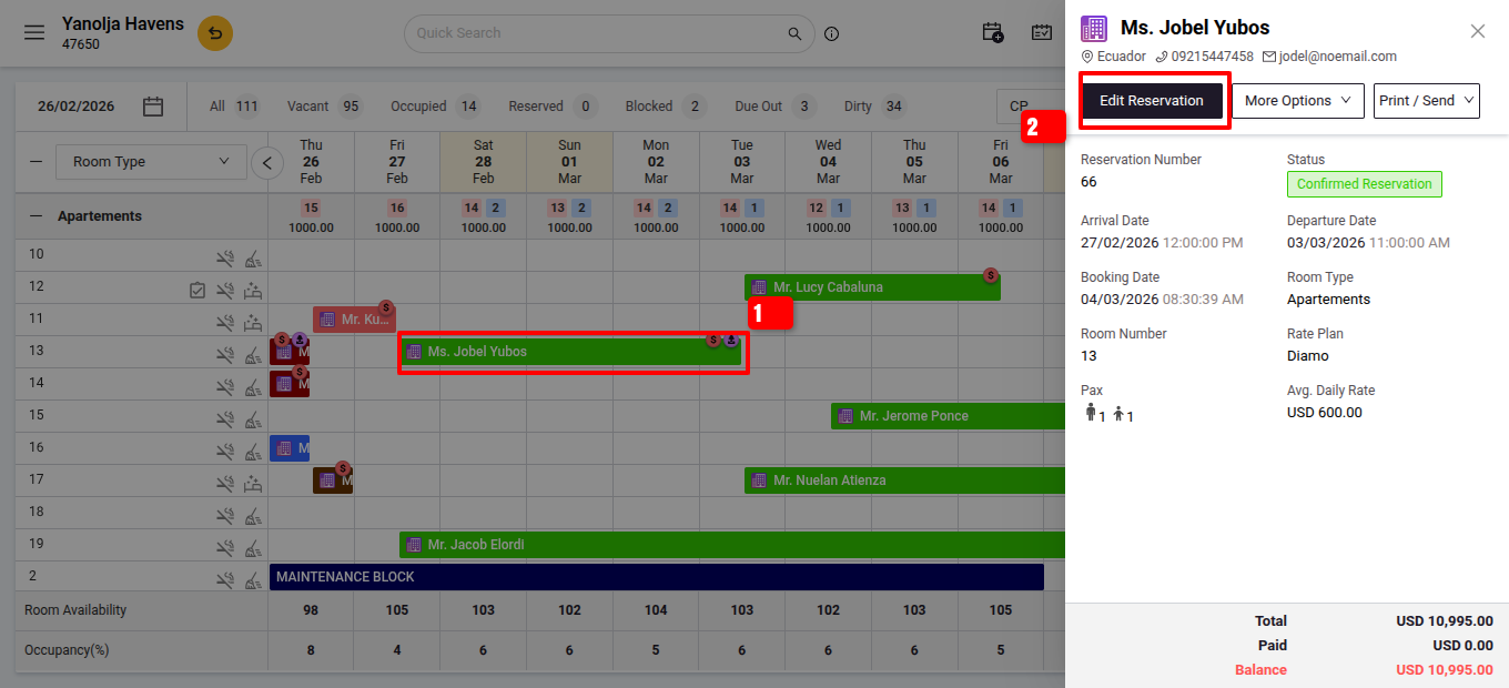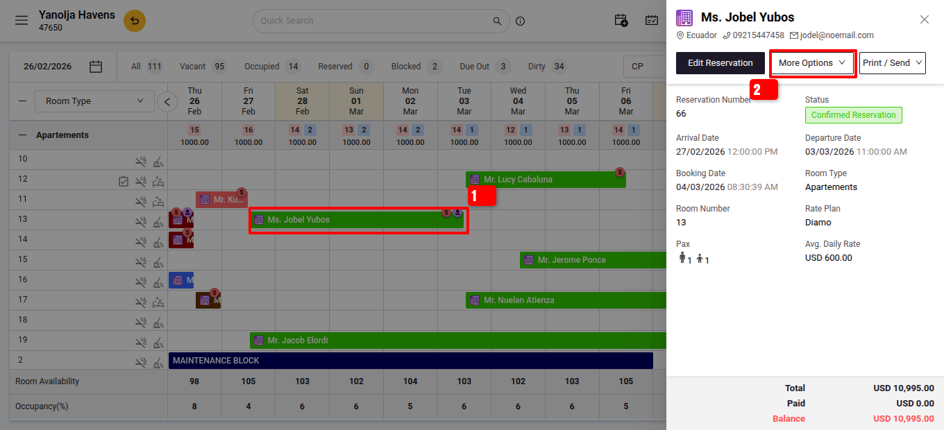 - Go to the Front Office section and select the relevant reservation from Reservation or Stay View Page.