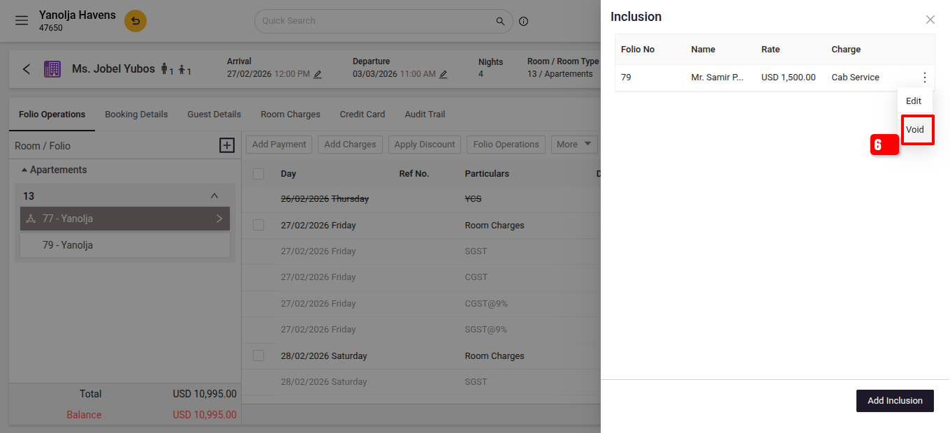 Here is alternate way to void inclusions.Edit the Reservation: