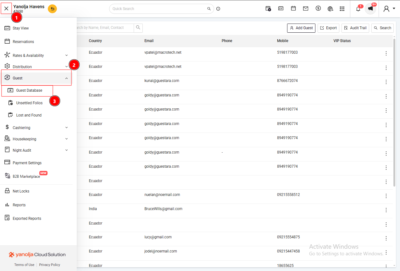 - Navigate to Guest > Guest Database.