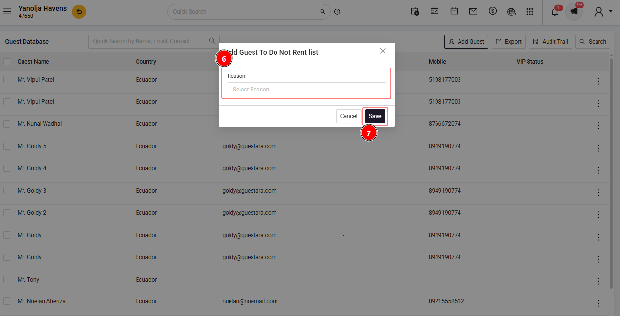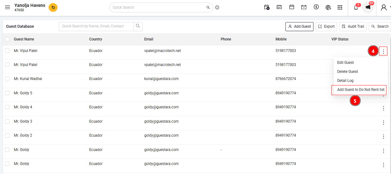 In PMS, blacklisting a guest is a straightforward process that helps prevent future reservations from unwanted guests. Here's how you can do it:
