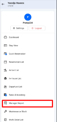 To access the Manager Report in the PMS Mobile App, follow these steps: