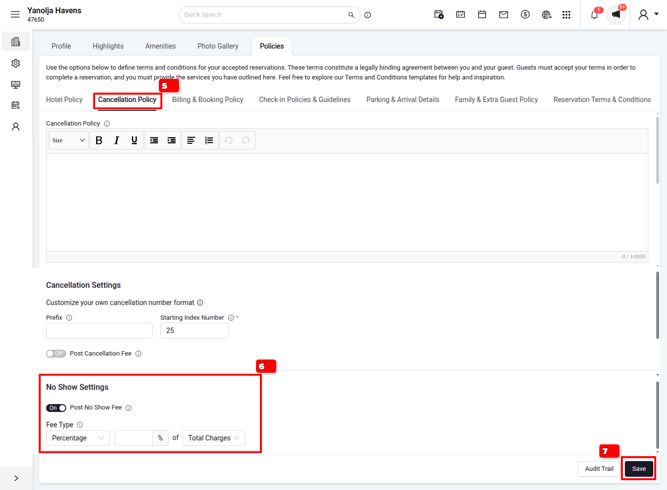 Steps to Define No-Show Charges