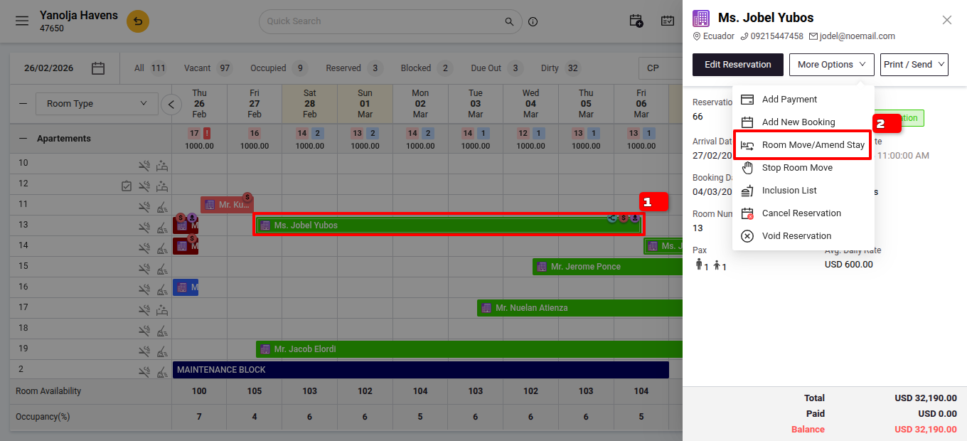 - Select Move Guest.