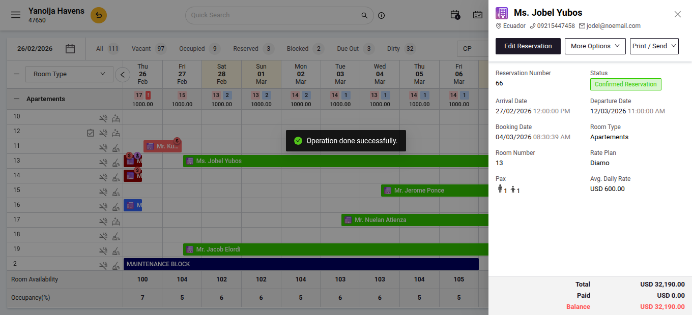- Click on the specific reservation.