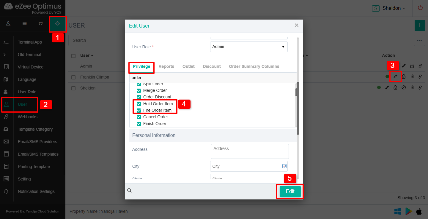 3. Click on the Pen/Pencil (Edit) icon for the user