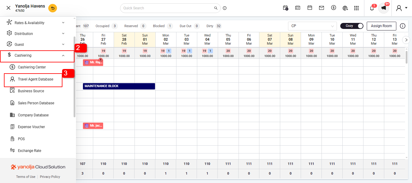 Go to Cashiering .Go to Travel Agent Database.