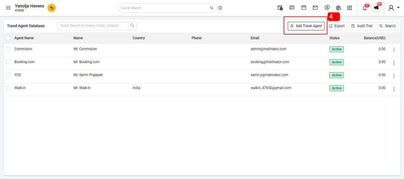 Go to Add Travel Agent