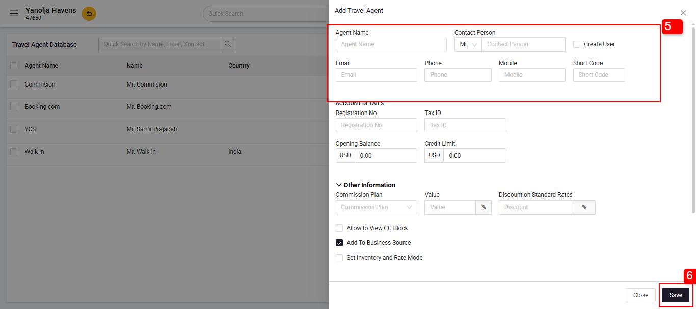 5. Fill in the required fields:- Travel Agent Name