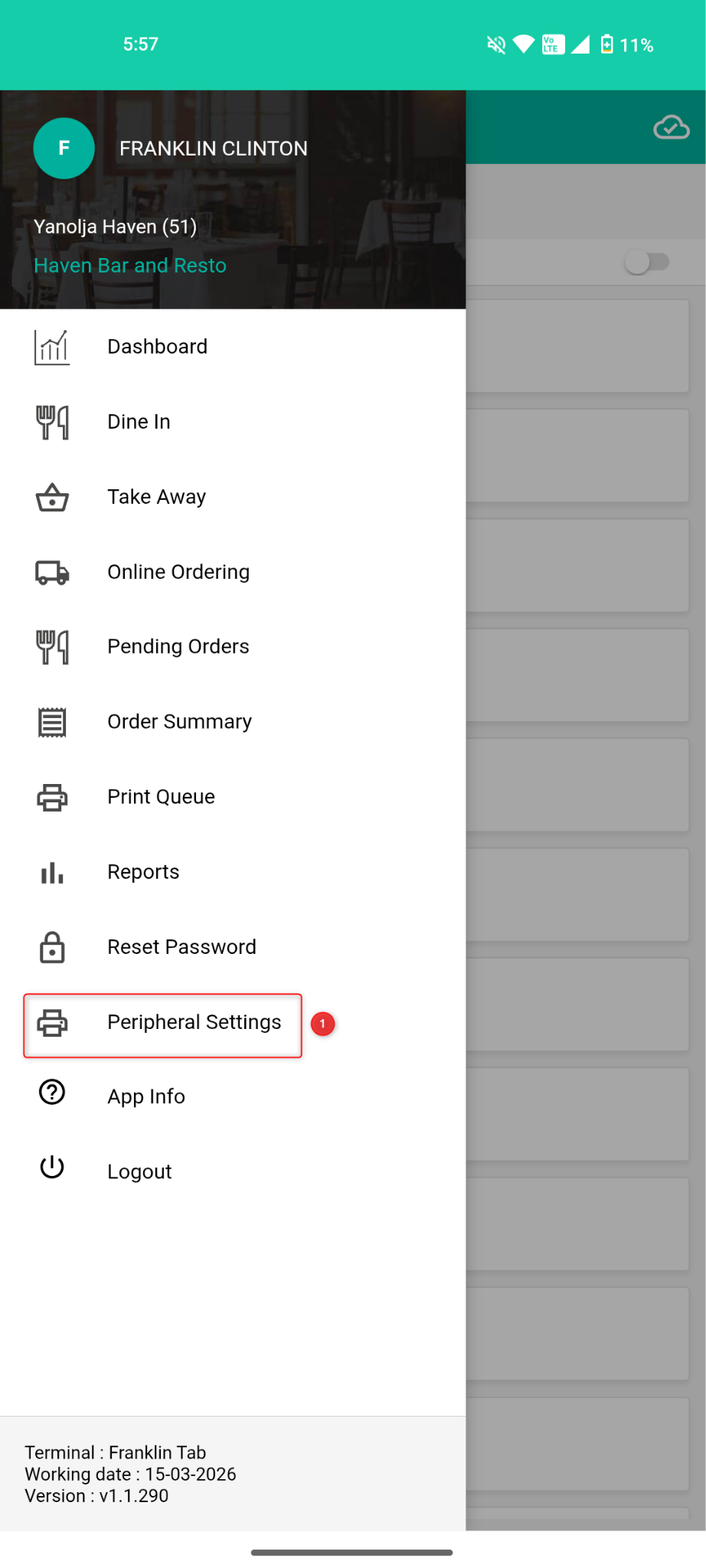 1. Open your RapidServe Application and Navigate to the Peripheral Settings.