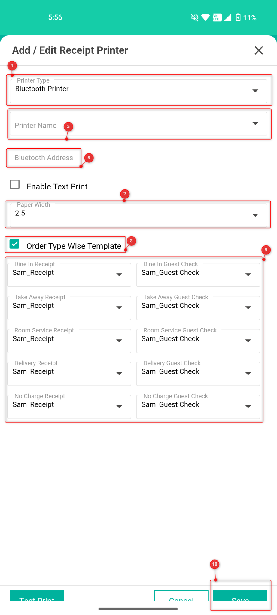 10. Click on “Save” and the Bluetooth printer has been completed.