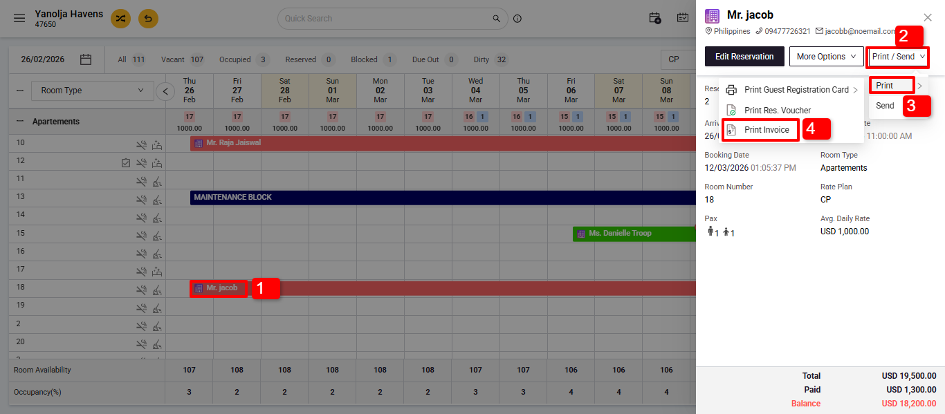 3. Select the reservations you wish to print an invoice for.