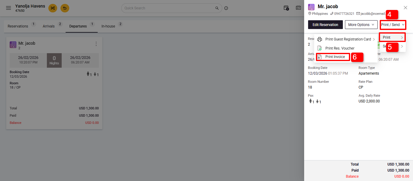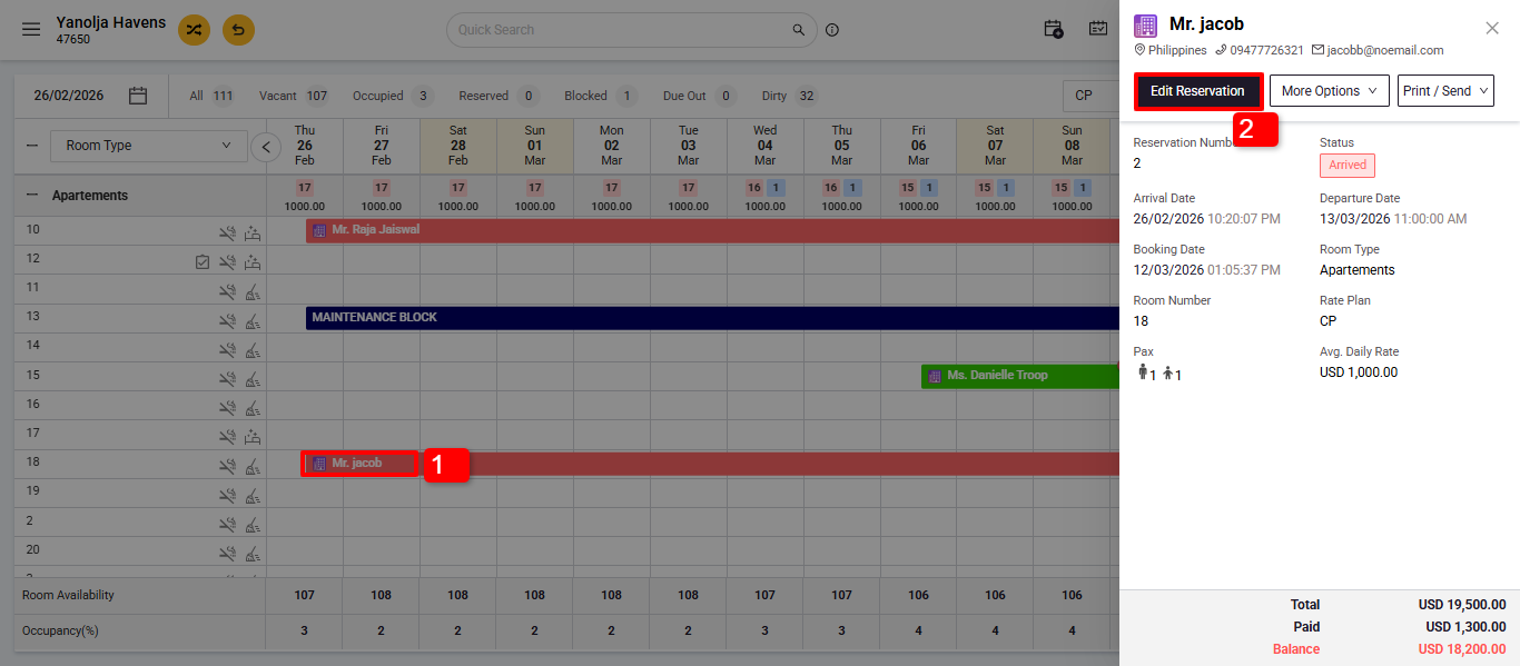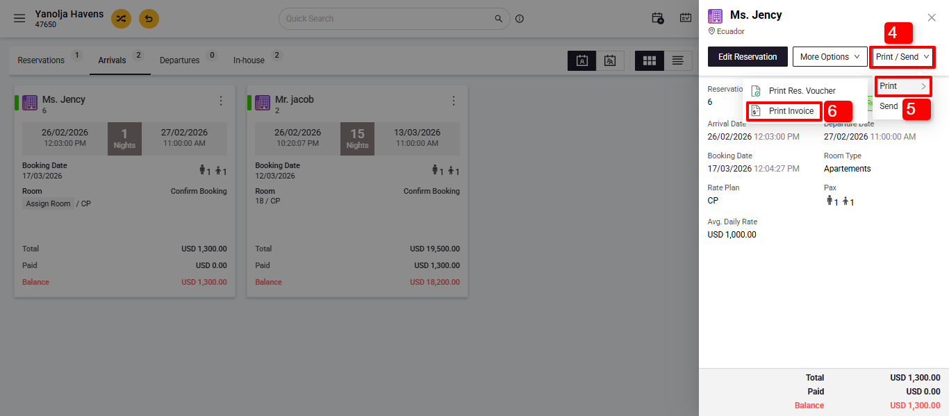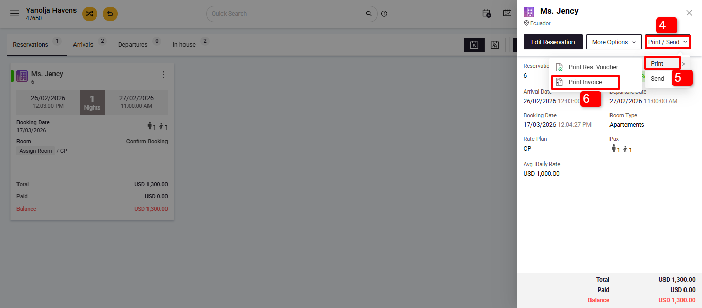 1. Select the guest's reservation by clicking on it