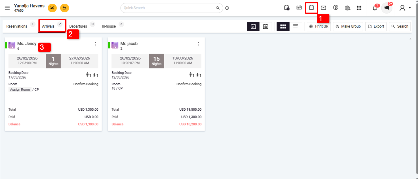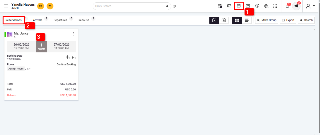 1. Navigate to Front Office > Reservations.