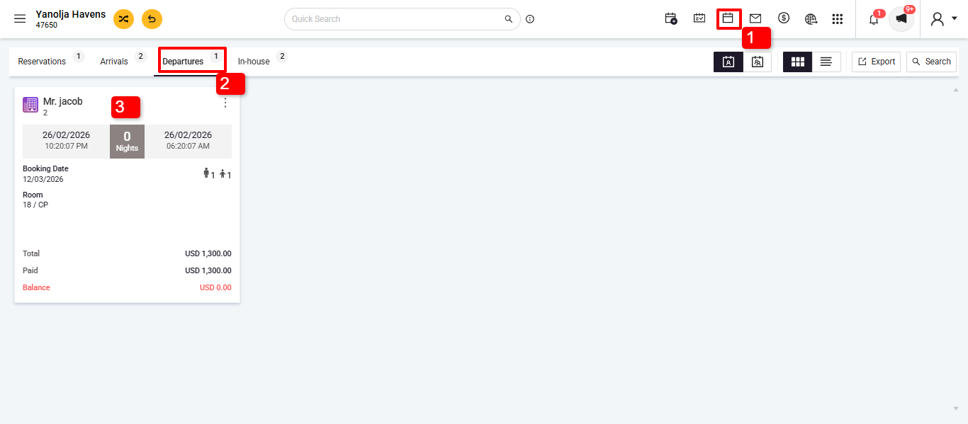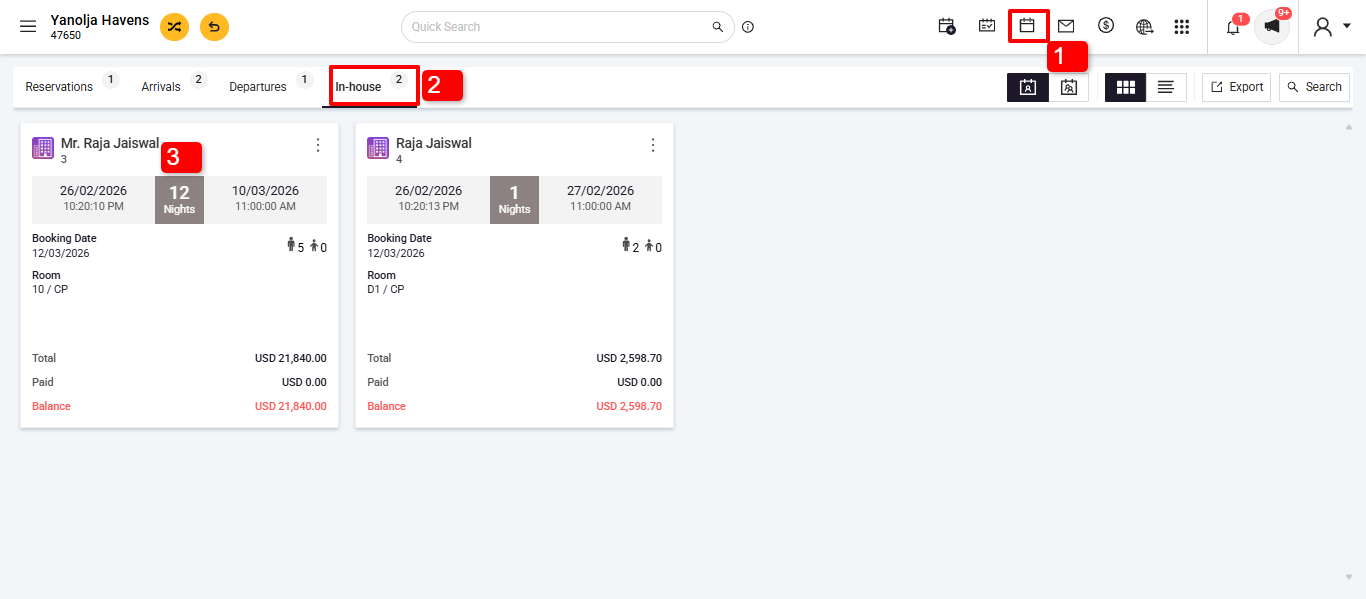 1. Go to Front Office > Reservations.